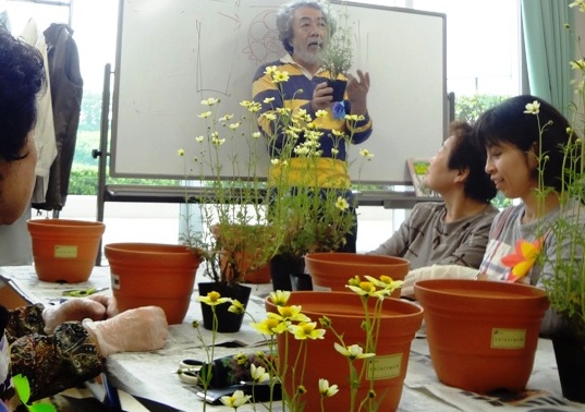 前半の1時間は、身近な例を挙げながら、「きんや先生」のガーデニング・トーク。後半の寄せ植えでは、7号鉢を使いウインターコスモス、アンゲロニア、ビオラの3種を使った実技。1-150x150.jpg)